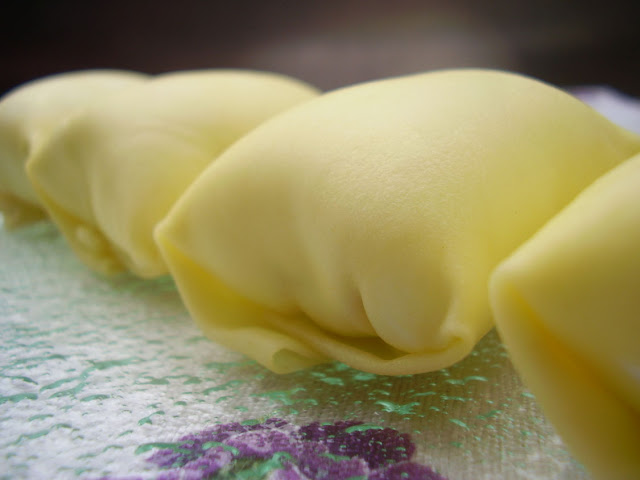 followed by a table spoon of durian paste, wrap it like a square pillow,